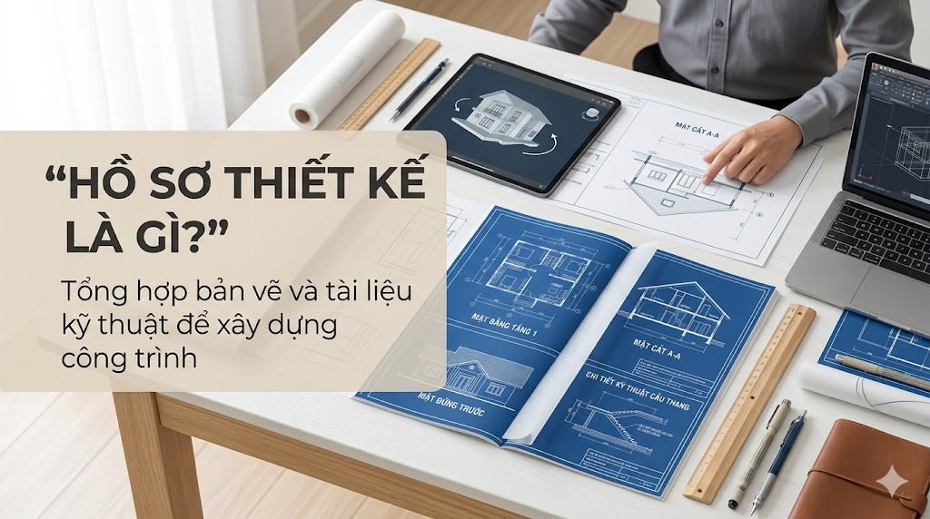 Hồ sơ thiết kế nhà là toàn bộ các bản vẽ kỹ thuật và tài liệu hướng dẫn thi công công trình. Đây là cơ sở để đội thợ triển khai xây dựng đúng theo phương án đã được thống nhất.
