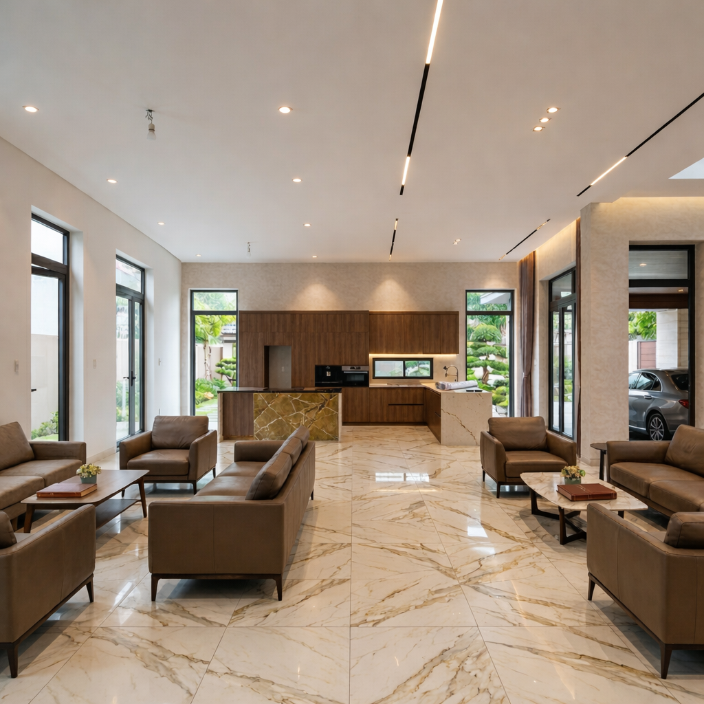 Phần hoàn thiện thường gồm cửa, sơn, lát nền, thiết bị vệ sinh, đèn chiếu sáng, lan can, trần và các chi tiết trang trí. Nếu không chuẩn bị kỹ ngân sách từ đầu, đây là giai đoạn dễ phát sinh nhất.