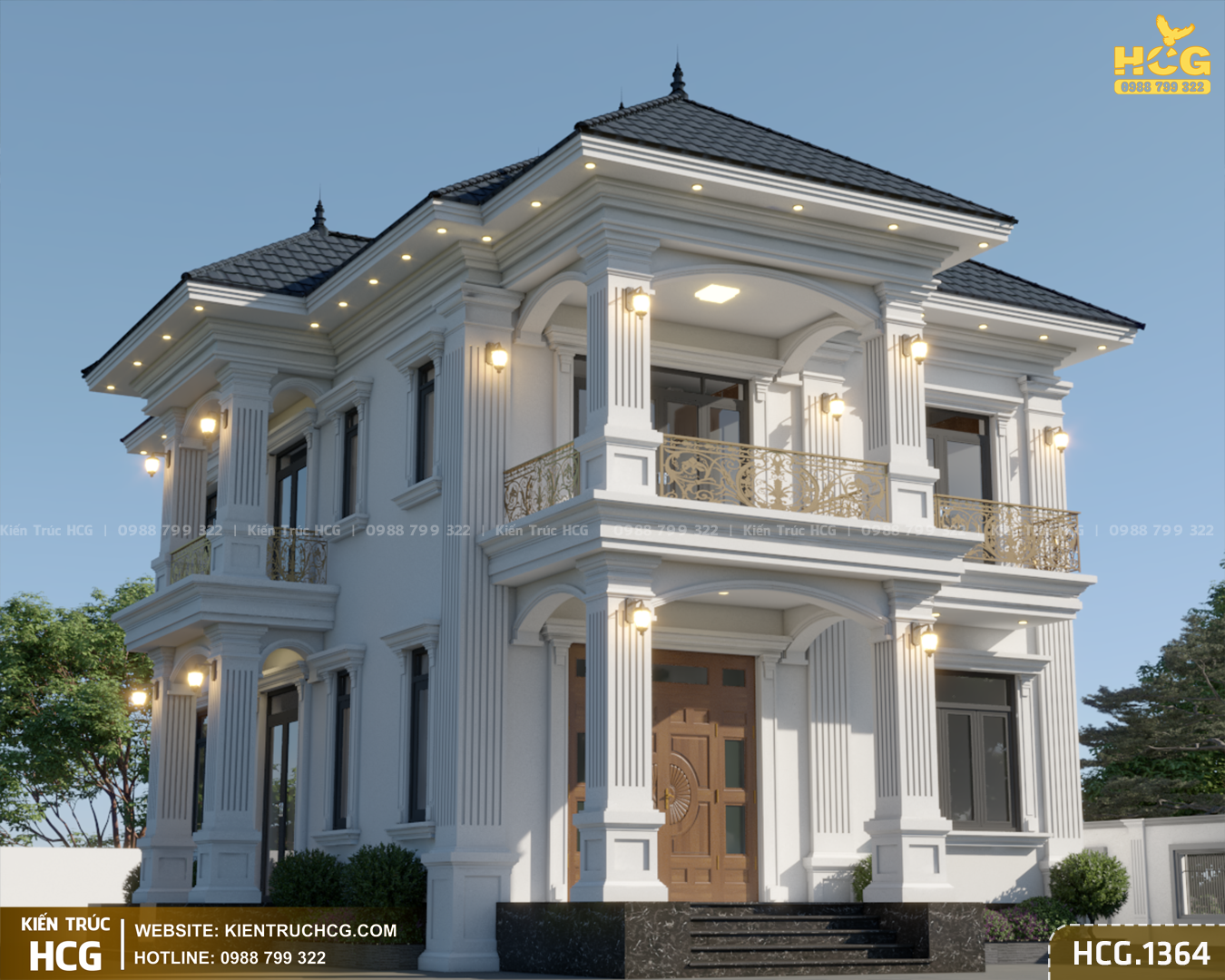 HCG.1364 là mẫu biệt thự 2 tầng mái nhật phong cách tân cổ điển do Kiến Trúc HCG thiết kế cho khu đất mặt tiền 9m – kích thước phổ biến tại đô thị và khu dân cư ven đô. Công trình hướng tới sự bề thế vừa phải, tinh tế trong chi tiết và tối ưu công năng, phù hợp nhu cầu ở lâu dài của gia đình hiện đại.