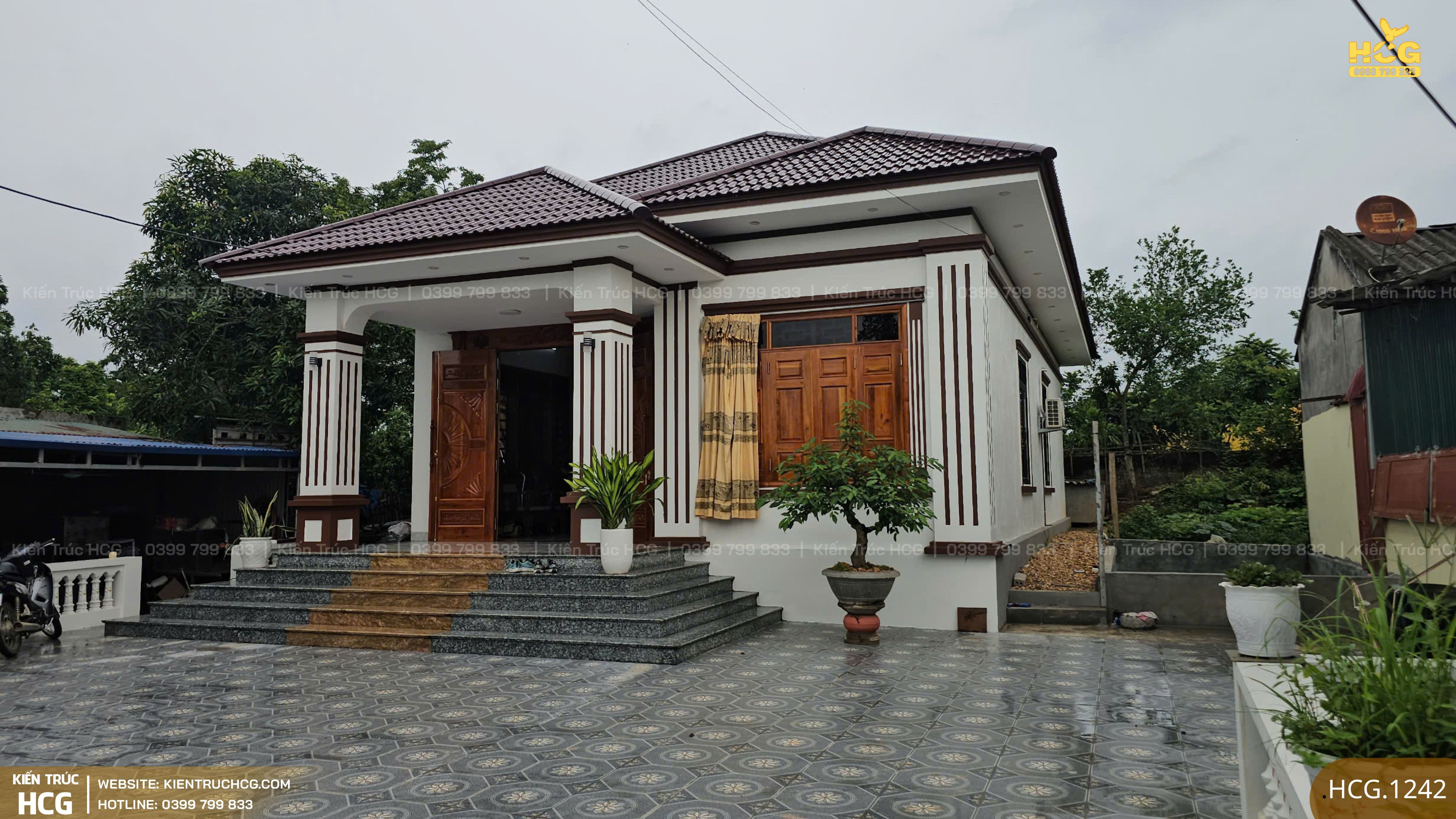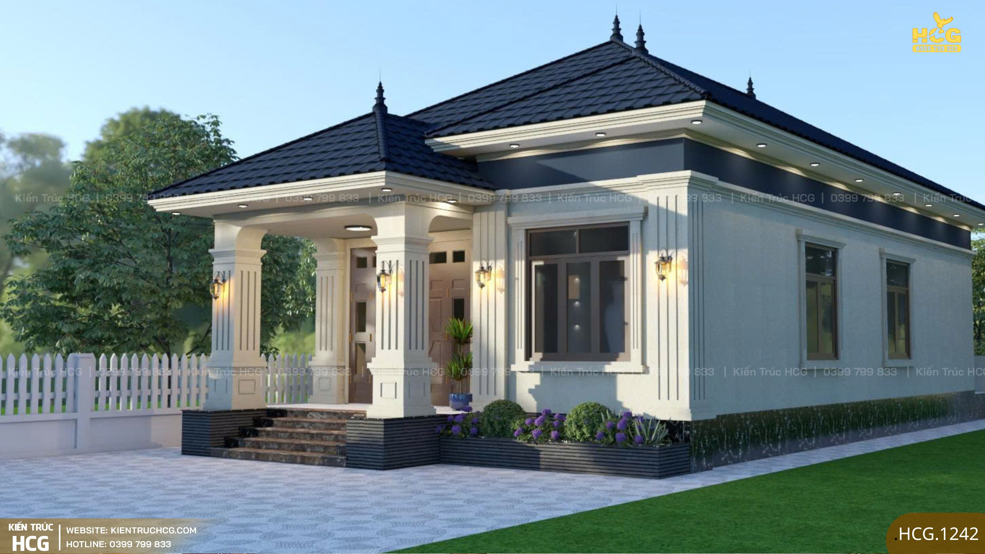 Ngay từ giai đoạn thiết kế, HCG định hướng công trình theo phong cách nhà 1 tầng mái Nhật hiện đại, ưu tiên sự cân đối và tính ứng dụng thực tế.