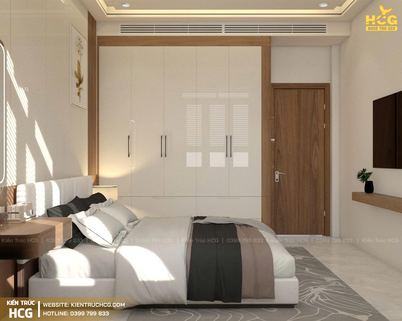Phòng ngủ: Tối giản, sử dụng tone màu dịu nhẹ và ngập tràn ánh sáng để tạo không gian nghỉ ngơi, thư giãn tuyệt đối.